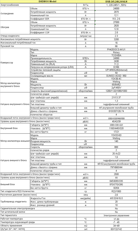 Объем В/Гц | 220-240в, 50 Гц | Хладопроизводительность, к Вт | 7.0 | Теплопроизводительность, | 7.8 | Максимальная потребляемая мощность, Вт | 3200 | Максимальный потребляемый ток, А | 16 | Размеры, мм | 1080х330х225 | Вес, нетто, кг | 17.0 |