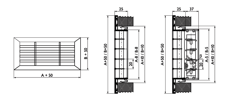 Решетки АЛН, АЛР предназначены для подачи и удаления воздуха системами вентиляции и кондиционирования в помещениях любого назначения. Решетки АЛН представляют собой раму прямоугольной формы с установленными в нее фиксированными горизонтальными жалюзи. Решетки АЛР комплектуются регулятором расхода воздуха. Простота и надежность настенного монтажа к воздуховодам обеспечивается с помощью установленных на боковых стенках решетки пружинных фиксаторов. Потолочный монтаж рекомендуется производить с помощью самонарезающих винтов. С целью удобства установки решетки могут дополнительно комплектоваться монтажной рамой. Решетки изготавливаются из алюминия и окрашиваются методом порошкового напыления в белый цвет (RAL 9016). При изготовлении продукции на заказ возможна окраска в любой цвет по каталогу RAL или текстурирование.